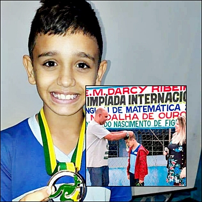 | O aluno Ronald Figueiredo, de 11 anos, do 6º ano da Escola Municipal Darcy Ribeiro, em São Gonçalo, venceu uma competição internacional de matemática (fotos divulgação) |